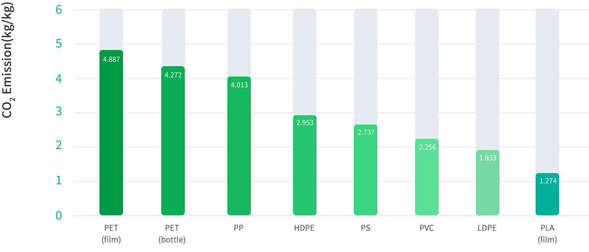 PLA與其他塑料碳足跡對(duì)比